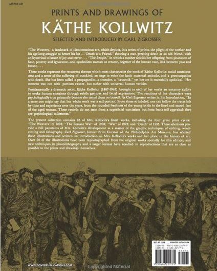 The present collection contains 83 of Mrs. Kollwitz’s finest works, including the last great print cycles: “The Weavers” of 1898; “The Peasant War” of 1908; “War” of 1925; and “Death” of 1935. These selections provide a full panorama of Mrs. Kollwitz’s development as a master of the graphic techniques of etching, woodcutting and lithography. Over 69 of the illustrations have been rephotographed from the original works specially for this edition, and new techniques in photolithography and a larger format have resulted in reproductions that are as close as possible to the prints and drawings themselves.