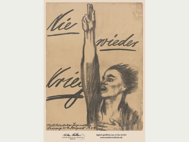 Berühmtestes Plakatmotiv von Käthe Kollwitz, Nie wieder Krieg! (Lithographie, 1924)